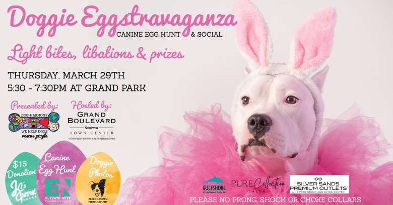 Description: Dog Harmony is hosting Doggie Eggstravaganza, the annual canine social where dogs hunt for eggs filled with yummy treats in Grand Boulevard on Friday, March 29 from 5:30 - 7:30PM.