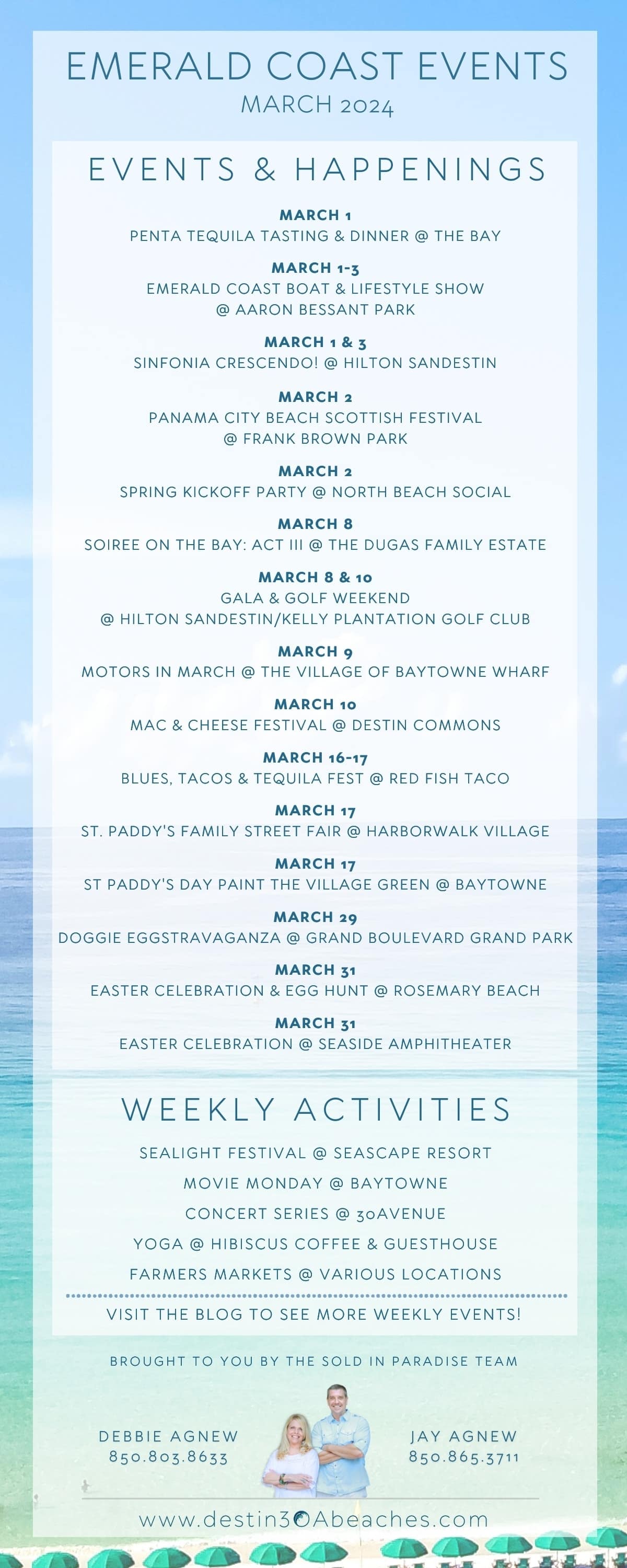 March arrives in the beach community of Destin and 30A with a wave of anticipation, as the promise of warmer days and sun-kissed adventures begins to stir. March is not just a month—it's a celebration of coastal living, marked by an array of vibrant local events that showcase the unique charm and culture of our beloved community. Take a look at some of the festivals and events happening this coming month!